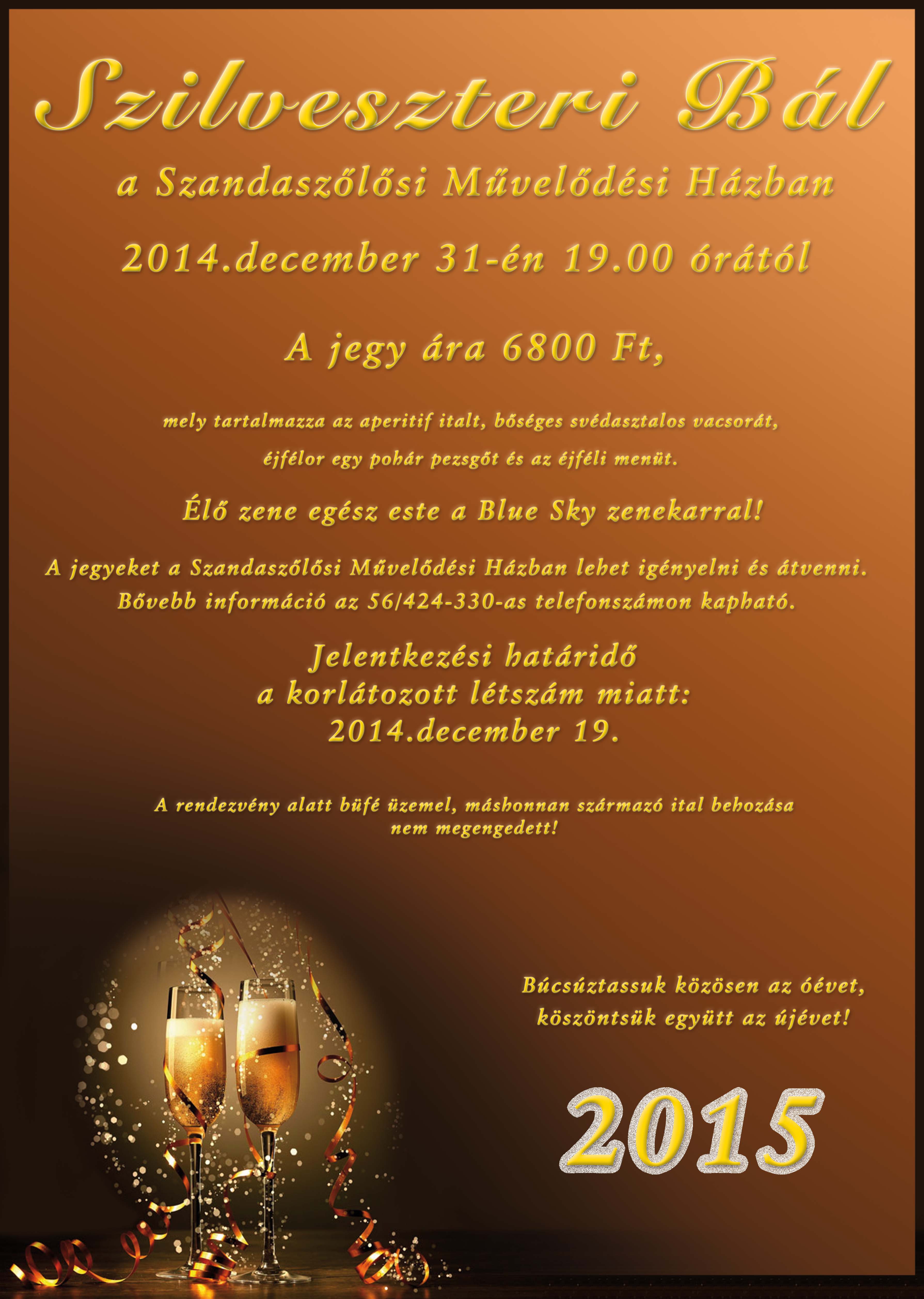 2014. december 31. 19.00 órától Szilveszter a Blue Sky zenekarral (plakát mellékelve)